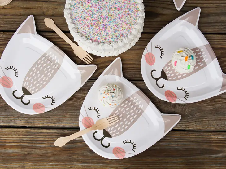 Diese schönen Pappteller mit Katzenmotiv sind die perfekte Basis einer Party für die kleinen Stubentiger.